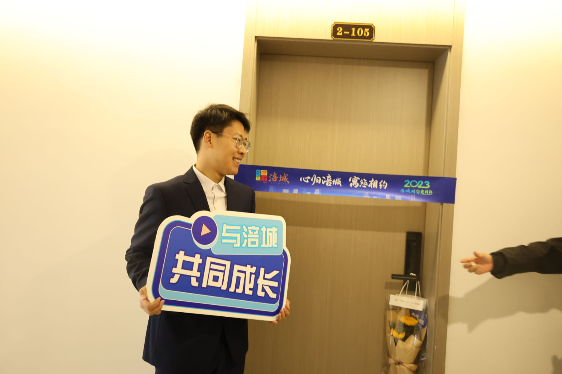 (曾胜利部长为入住人才代表发放公寓钥匙)