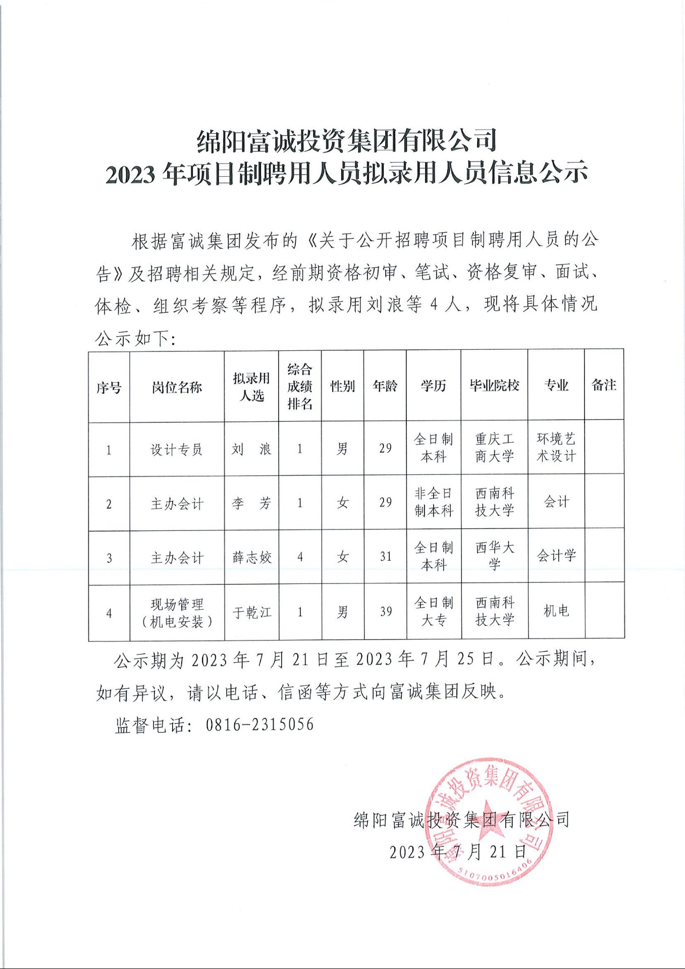 m88明昇2023年项目制聘用人员拟录用人员信息公示