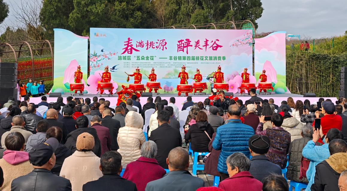 (3月14日,丰谷镇第四节桃花文旅消费季在“蔬香绿野”芦笋大健康农业主题公园盛大启幕,该项目由集团全资二级公司绵阳吉景建设发展有限公司承建。)