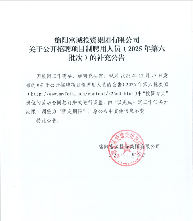 m88明昇关于公开招聘项目制聘用人员(2025年第六批次)的补充公告