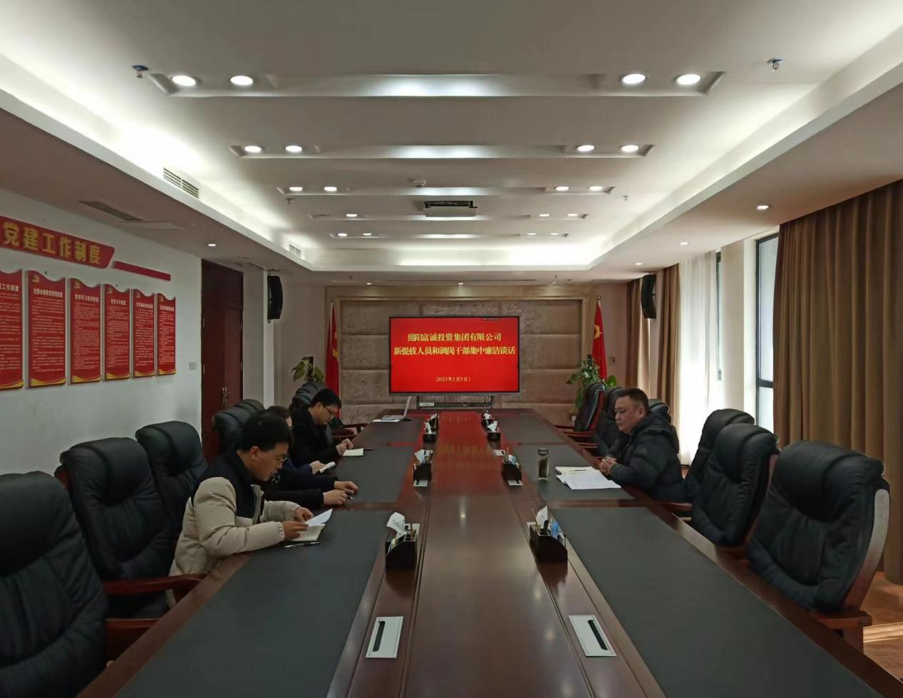2月9日下午,根据集团党委工作安排,集团监事会主席王槐对近期4名新提拔人员和重点岗位调岗干部开展了集中廉政谈话。会上集中观看了警示教育片《家道》,观看结束后,王槐主席结合自身工作经历,与大家进行了严肃认真的谈心谈话。他提出,新任职的管理人员,都是经过集团党委认真研究,通过个人申请、层层考核确定的优秀业务骨干,在工作中要时刻以案为鉴、以案明纪,做到爱岗敬业、真抓实干、廉洁自律,高标准完成组织交给的各项任务。随后,新提拔人员还依次作了表态发言。会议要求,新提拔人员和重点岗位调岗干部要摆正位置,牢记使命,提高政治站位,不断提升党性修养;要提高认识,加强学习,迅速适应新的工作环境;要勤奋敬业,坚守责任…… [更多]