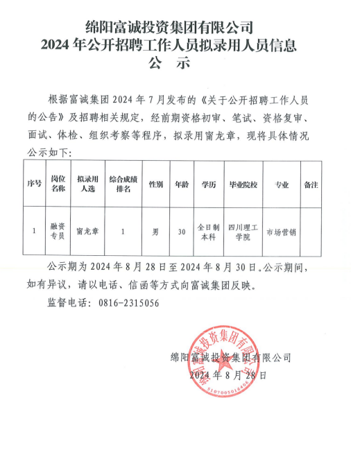 为有效推进m88明昇(以下简称“m88明昇集团”)全资子公司绵阳富城建筑工程有限公司(以下简称“富城建工”)城市有机更新项目开发建设工作,打造一支业务能力强、专业素质高的员工队伍,经m88明昇集团研究决定,拟面向社会公开招聘项目制聘用人员2名。现将有关事宜公告如下:一、公司简介m88明昇集团:成立于2002年10月30日,是经绵阳市人民政府批准设立,由绵阳市涪城区企业培育发展中心控股管理的国有企业,注册资本金2亿元人民币。集团自成立以来,坚持以市场为依托,政策性投资和市场化运作相结合,聚焦涪城区重大项目投融资、重点工程建设、国有资产经营管理等主责主业抓发展,截至目前,集团资产总额170亿元。富城建…… [更多]