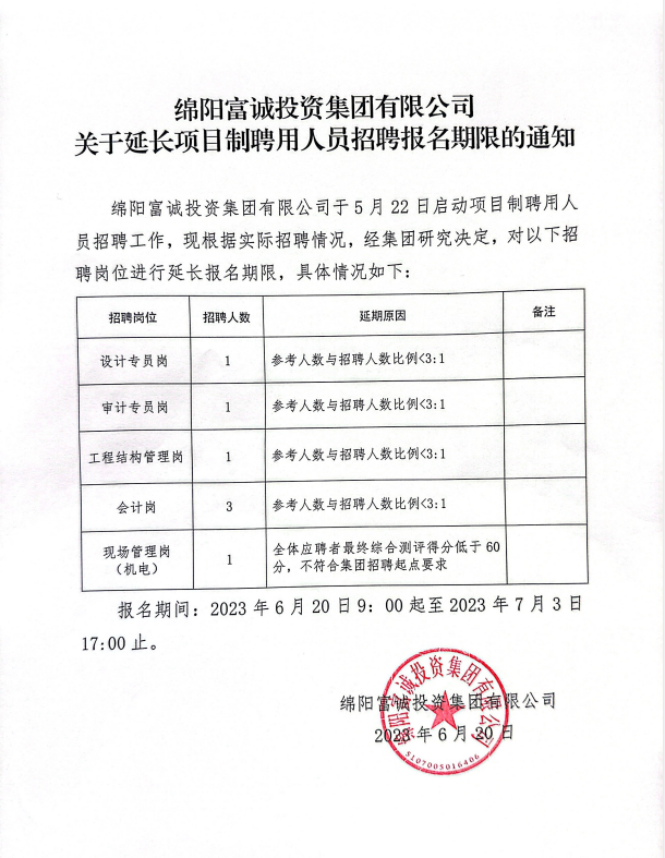公 告 绵阳富城建筑工程有限公司本次需通过竞争性谈判公开招募涪城区临港经济发展区锂电池配套产业园基础设施建设项目可研代理招标单位,此次报价采用二轮报价下浮比例方式进行。报名时请提交以下材料:1、提供营业执照复印件(三证合一,加盖鲜章),能提供增值税专用发票。2、法定代表人身份证:法定代表人亲自到场的出示身份证原件,存复印件。若法定代表人不能亲自到场的,被委托人应出具法定代表人授权委托书原件和被委托人的身份证及法定代表人授权书(身份证查验原件,存加盖鲜章复印件;法定代表人授权委托书详见附件)。3、申请人应具有在四川省政府采购网…… [更多]